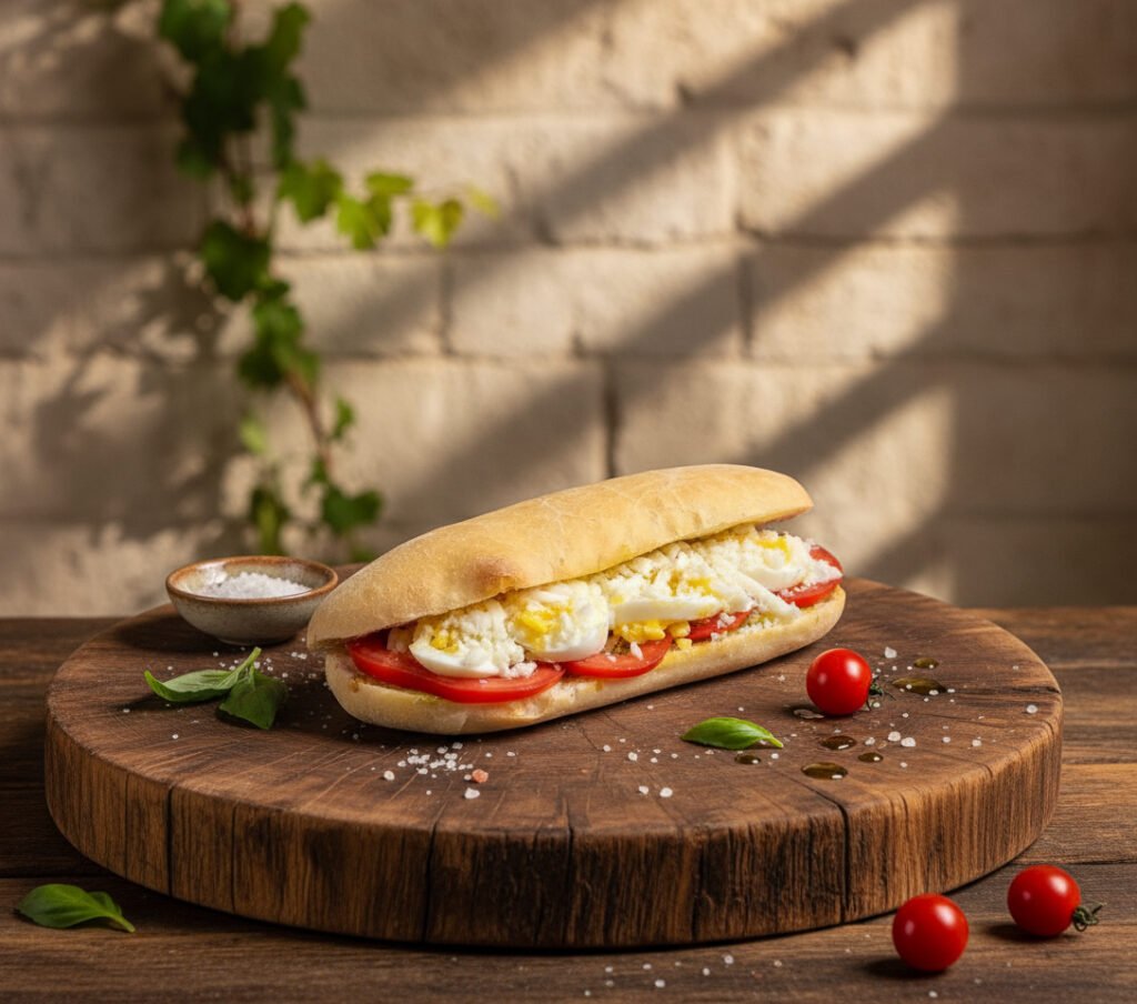 Pastachi’s special panino bread with cream cheese, tomato, boiled egg, pesto sauce, and pepper.Pesto contains basil, hazelnuts, garlic, peanuts.