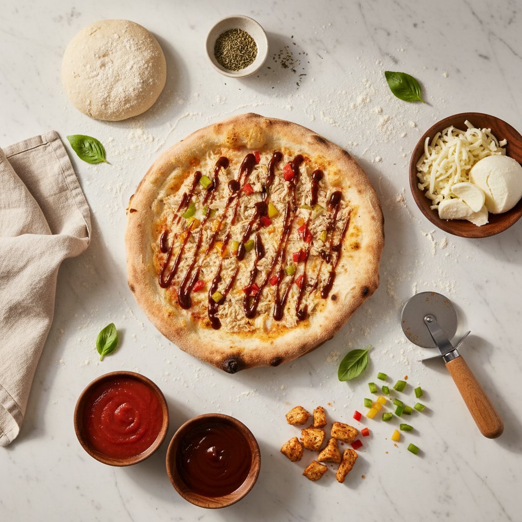პასტაჩის სპეციალური თხელი პიცის ცომით, პომიდვრის სოუსი, მოცარელას ყველი, ორეგანოს სუნელით შეზავებული ქათამი , ბულგარული, ბარბექიუს სოუსი